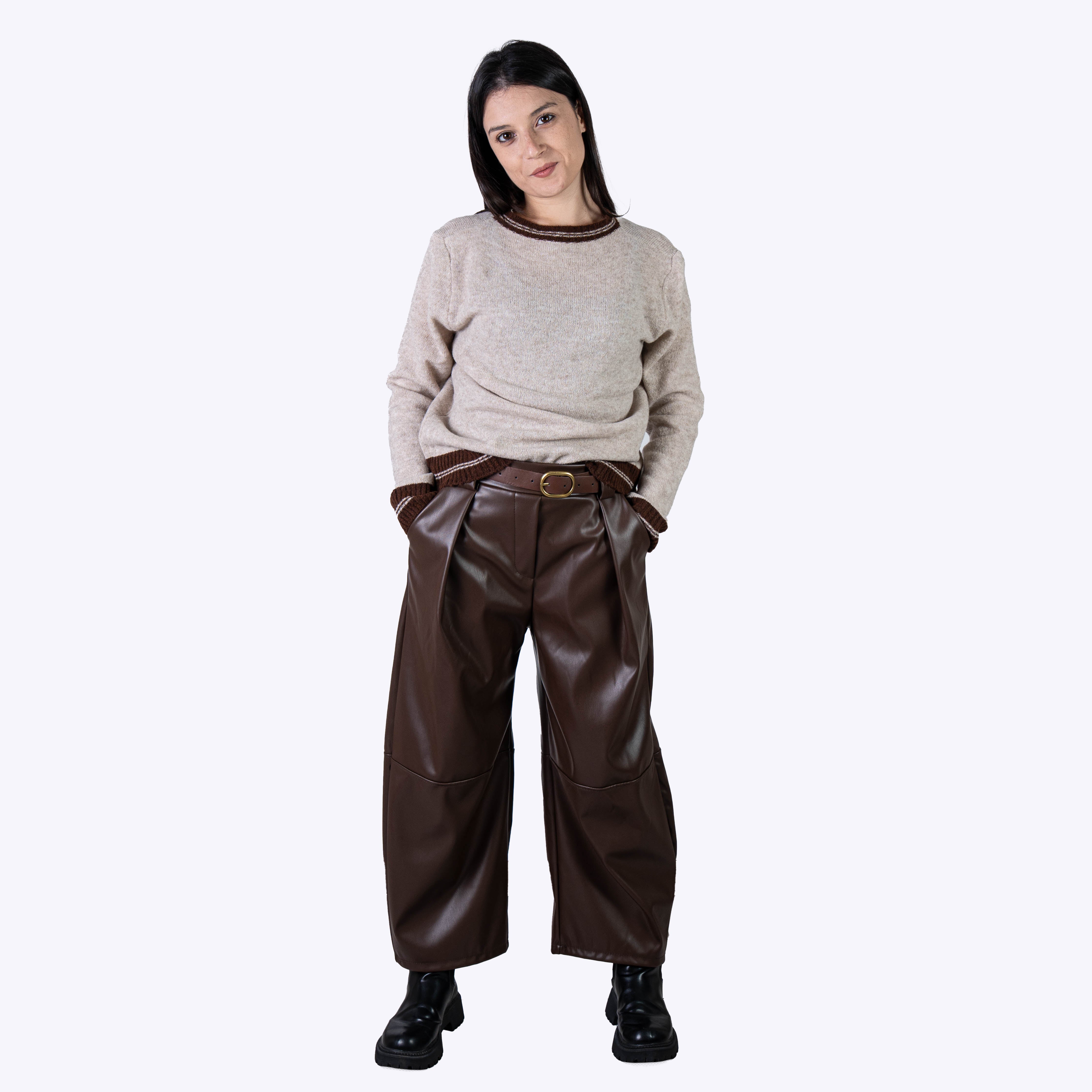 Questo abbinamento valorizza lo stile quotidiano con linee morbide, dettagli ricercati e un mix equilibrato tra comfort e raffinatezza. Lasciati guidare dall’ispirazione e ricrea l’outfit perfetto per ogni momento della giornata.